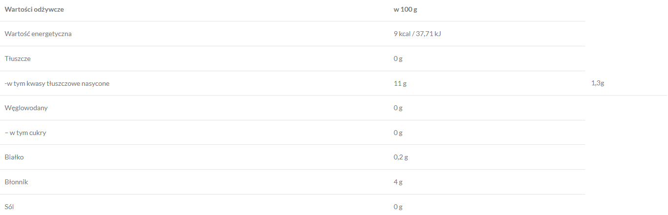 ma 0 g węglowodanów netto,