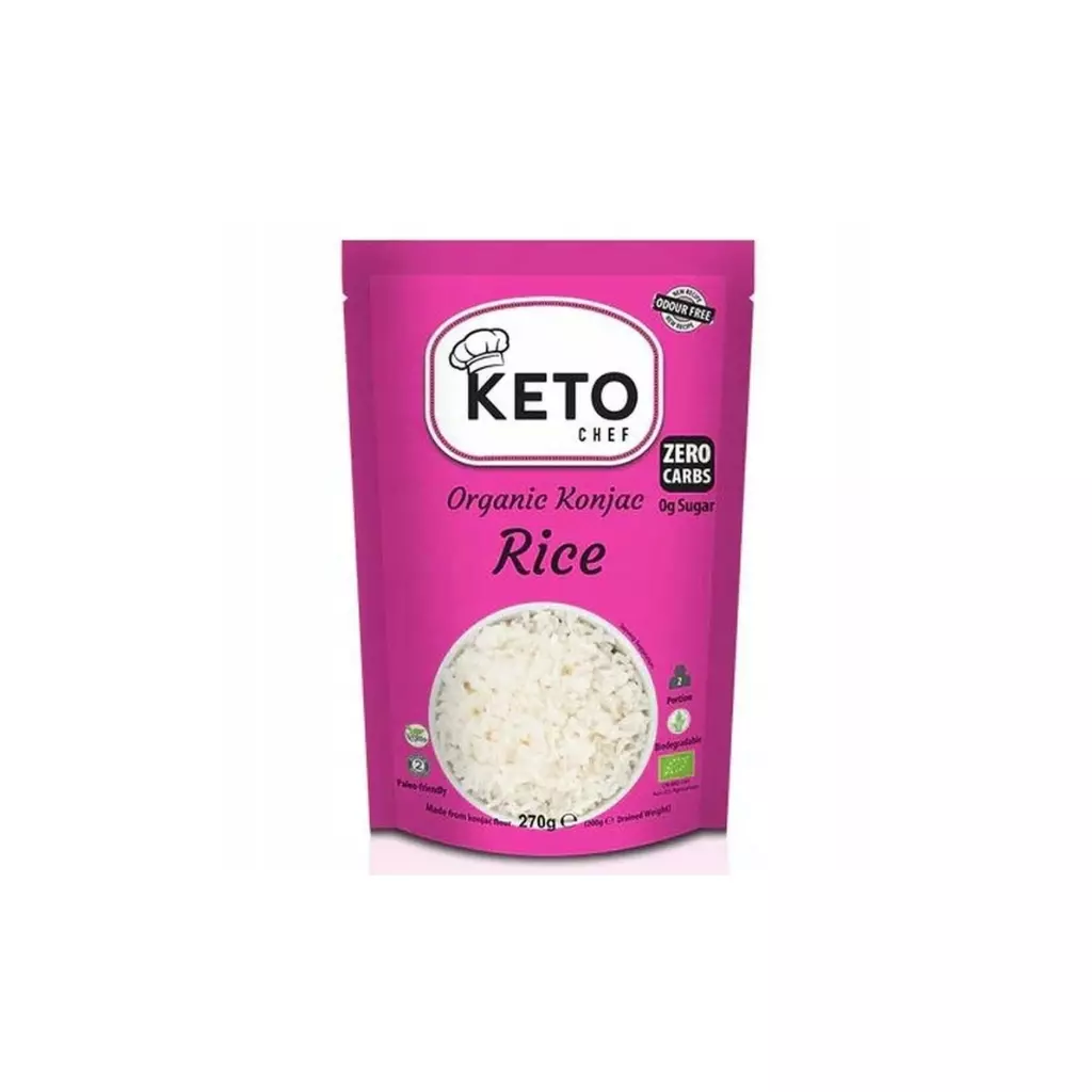 Keto Chef Konjac Rice BIO to ekologiczny ryż konjac w formie drobnych ziaren, stworzony jako idealny zamiennik tradycyjnego ryżu dla osób na diecie ketogenicznej, low carb, LCHF, redukcyjnej oraz bezglutenowej. Produkt jest praktycznie bez kalorii, bez cukru i bez węglowodanów netto, dzięki czemu pozwala jeść ulubione dania bez kompromisów dla ketozy i poziomu glukozy.