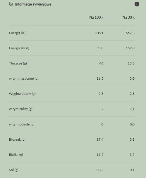 Każde ciasteczko zawiera bardzo niską ilość węglowodanów netto, jest bogate w błonnik prebiotyczny i oparte na naturalnych tłuszczach. Dzięki temu syci na długo, stabilizuje energię i idealnie wpisuje się w styl życia keto, low carb i LCHF.