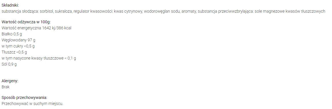 - słodzony: sorbitol + sukraloza