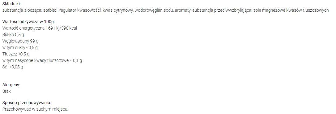 - substancja słodząca: sorbitol