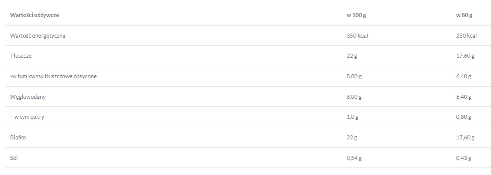 Wartości odżywcze w porcji 80 g