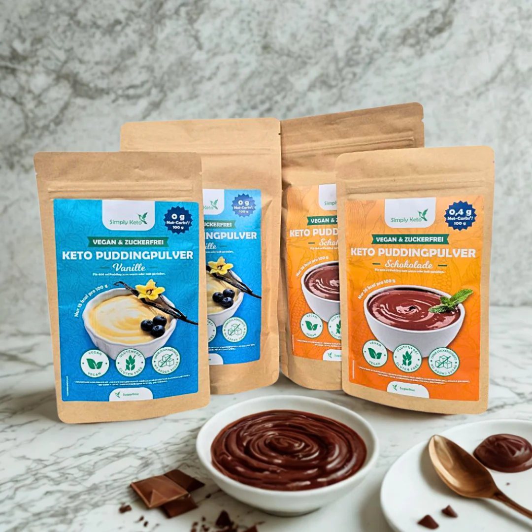 Simply Keto Keto Puddingpulver o smaku czekolady (Vorratspackung) to wysokiej jakości proszek do deseru budyniowego, który pozwala Ci w kilka chwil przygotować kremowy, czekoladowy pudding bez dodatku cukru i z niską ilością węglowodanów. To idealna opcja dla osób na diecie keto, low-carb lub redukcyjnej, które chcą zjeść coś słodkiego bez psucia makro — prosto z domowej kuchni.