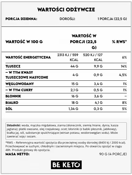- Wyjątkowo niska zawartość węglowodanów i wysoki udział błonnika – wesprzyj swoje zdrowie i sylwetkę!