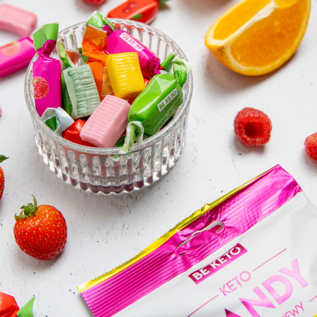 Keto Cukierki – Owocowa Mieszanka 70 g to bezcukrowa mieszanka owocowych cukierków, która zaspokaja ochotę na słodycze i daje przyjemność smakową nawet na najbardziej restrykcyjnej diecie. Produkt został opracowany jako zdrowsza alternatywa dla klasycznych słodyczy, która pozwala zaspokoić ochotę na coś słodkiego bez dodanego cukru, bez skoku glukozy i zgodnie z założeniami diety ketogenicznej lub low-carb.