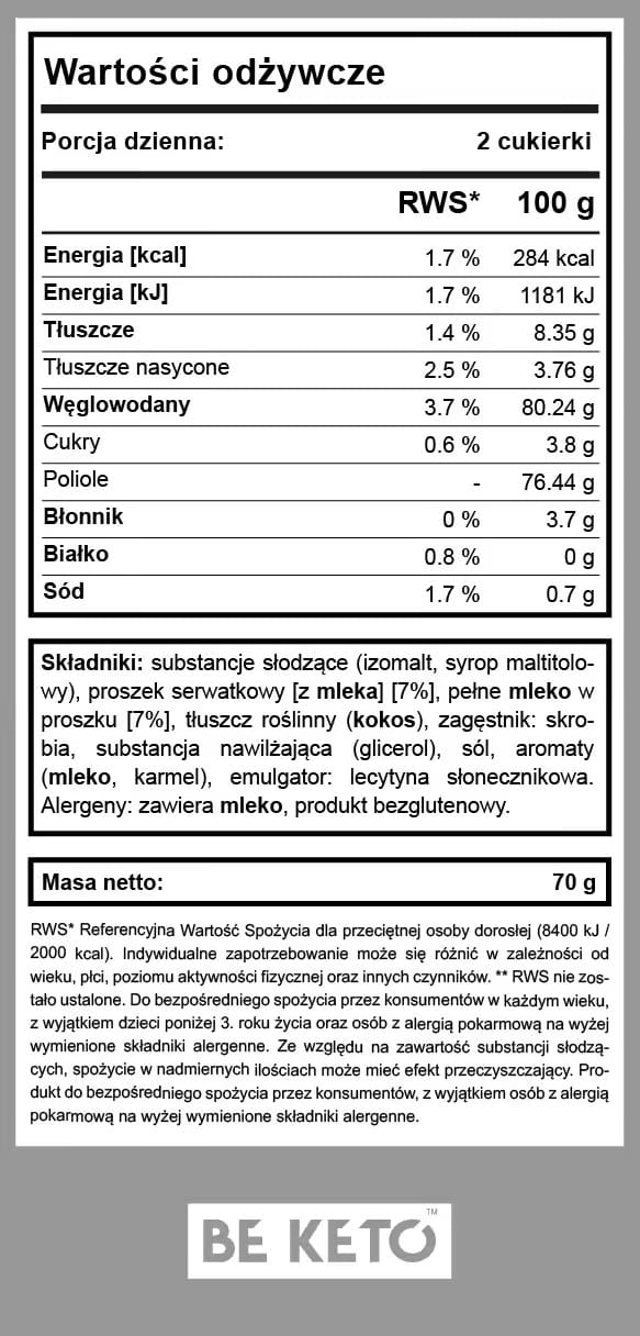 Keto Cukierki - Toffi 70g są idealnym rozwiązaniem dla wszystkich miłośników słodyczy, którzy jednocześnie pragną dbać o swoje zdrowie! Oferują one niezrównaną przyjemność bez wyrzutów sumienia. Oferując zdrową alternatywę dla tradycyjnych słodyczy, te cukierki pozwolą Ci cieszyć się smakiem, który pokochasz!