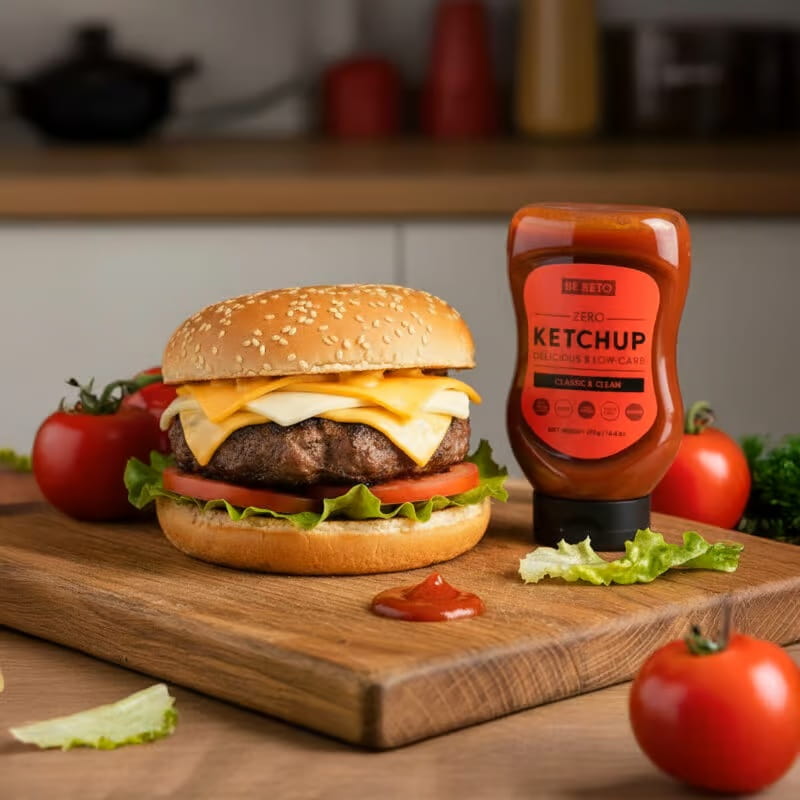 Odkryj nowy wymiar smaku z Keto Ketchup od BeKeto! Ten wyjątkowy ketchup to doskonałe rozwiązanie dla wszystkich miłośników smakowitych dań, pragnących jednocześnie unikać węglowodanów. Tylko 8 g węglowodanów na 100 g, z czego aż 6 g to naturalnie występujące cukry z pomidorów, pozwala Ci cieszyć się smakiem bez wyrzutów sumienia.
