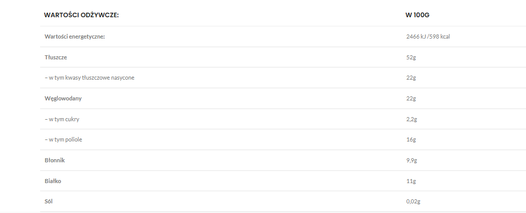 tylko 4,2 g węglowodanów netto (wg karty produktu),