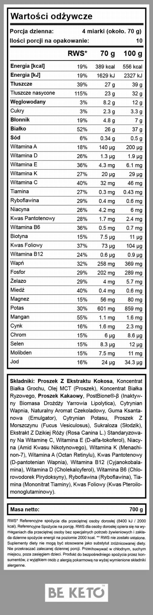 Keto Posiłek - Belgijska Czekolada 700g Be Keto