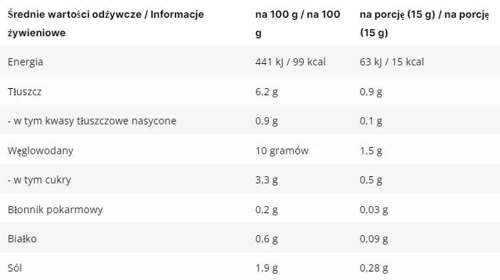nawet 70% mniej kalorii niż klasyczne sosy