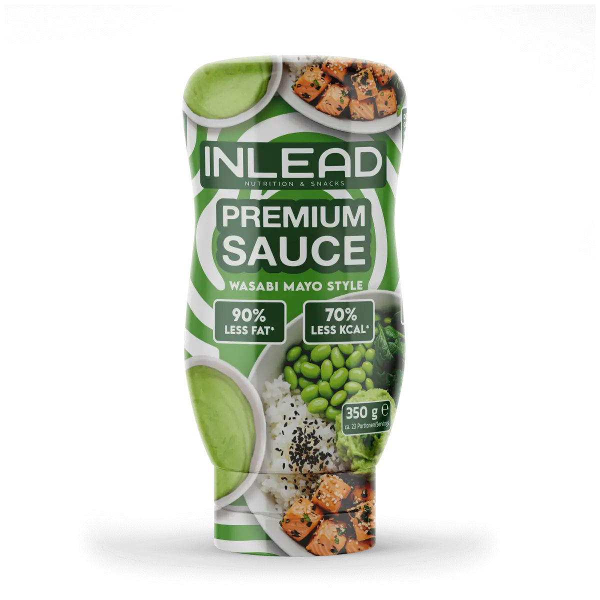 Inlead Premium Sauce Wasabi Mayo Style 350 ml to kremowy sos inspirowany kuchnią japońską, który łączy delikatną ostrość wasabi z aksamitną konsystencją majonezu – w wersji o znacznie obniżonej kaloryczności.