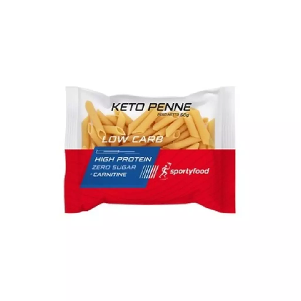 Sportyfood Keto Pasta Penne to wysokobiałkowy, niskowęglowodanowy makaron o klasycznym kształcie penne, zaprojektowany specjalnie dla osób na diecie ketogenicznej, low-carb, wysokobiałkowej i redukcyjnej, które nie chcą rezygnować z makaronu w codziennym jadłospisie. To funkcjonalna alternatywa dla tradycyjnego makaronu, zapewniająca pełnię smaku i strukturę, która świetnie trzyma sosy — a jednocześnie znacząco redukuje węglowodany netto.