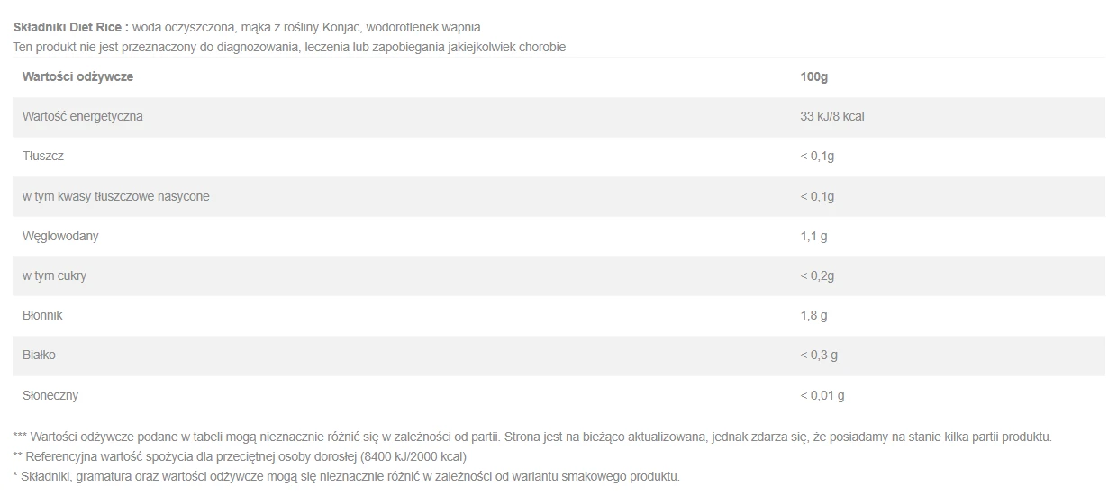Cheat Meal Diet Rice 400 g (300 g netto) to „ryż” konjac – jedna z najbardziej efektywnych zamian klasycznych węglowodanów w diecie keto i low carb. Produkt powstaje z korzenia rośliny konjac i charakteryzuje się skrajnie niską kalorycznością oraz minimalną ilością węglowodanów, przy zachowaniu objętości posiłku.