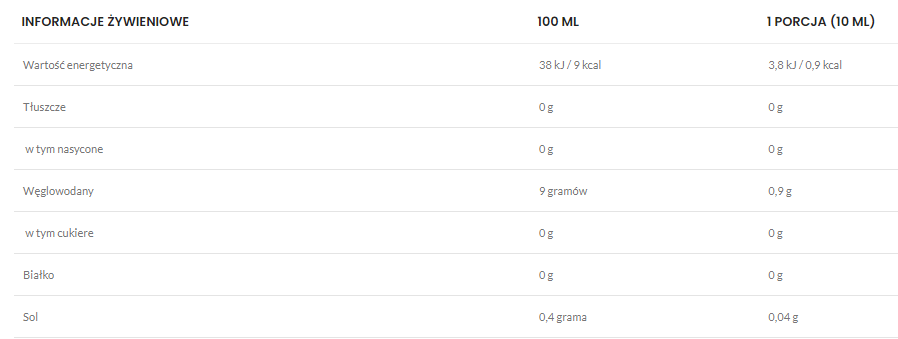 Syrop został opracowany z myślą o osobach stosujących dietę ketogeniczną, low-carb lub redukcyjną. Dzięki zastosowaniu substancji słodzących zamiast cukru zachowuje przyjemny, owocowy smak przy minimalnej kaloryczności.