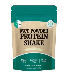 Go-Keto MCT Powder Protein Shake Vanilla to wysokiej jakości, niskowęglowodanowy koktajl proteinowy o kremowym smaku wanilii, który łączy pełnowartościowe białko z tłuszczami MCT (średniołańcuchowe trójglicerydy) w jednej porcji. To idealny keto posiłek, fit przekąska lub napój potreningowy dla osób na diecie ketogenicznej, low carb, LCHF, paleo oraz dla wszystkich, którzy chcą stabilnej energii z tłuszczu i białka bez cukru czy pustych kalorii — po prostu smacznie, sycąco i funkcjonalnie.