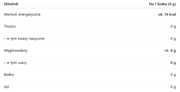 Zawartość składników w zalecanej dziennej porcji produktu ( 1 lizak):