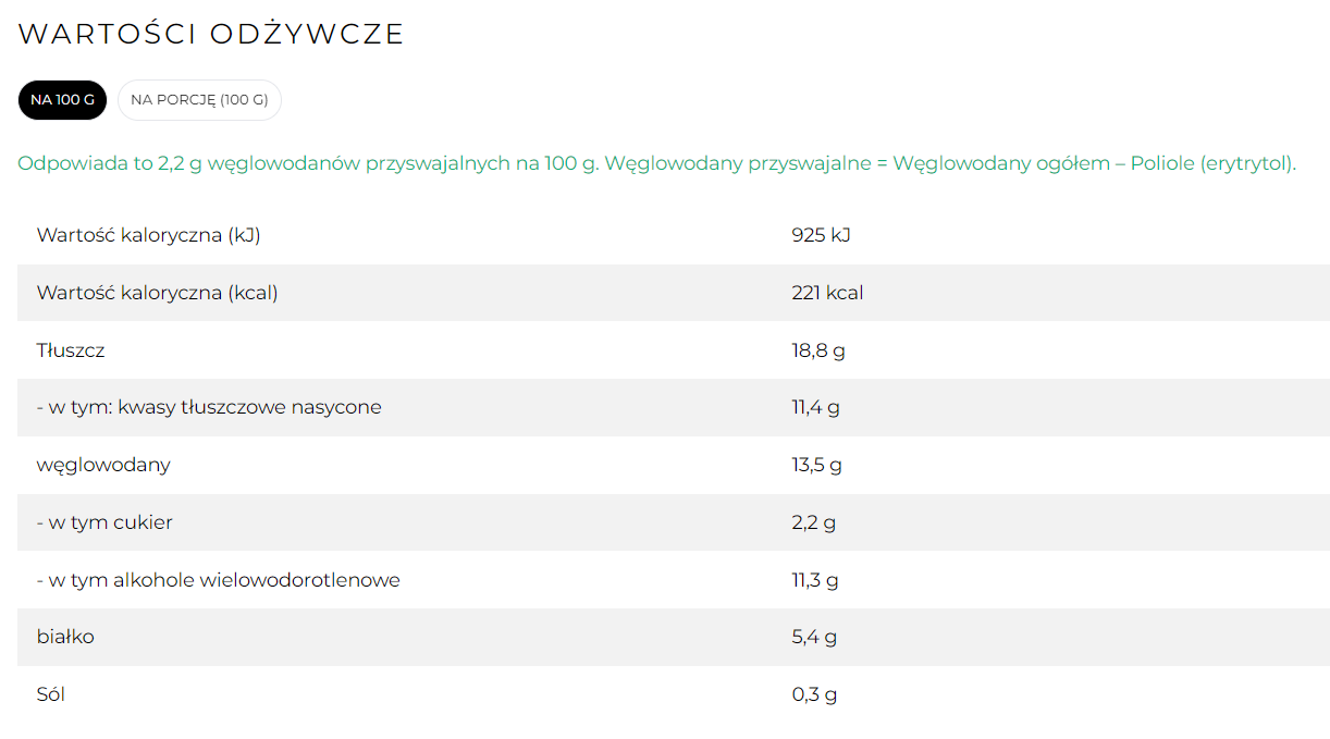 • Low carb & keto – bardzo niska zawartość węglowodanów netto