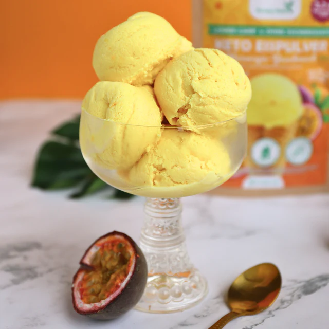 Lody low carb i keto o smaku Marakuja 500 g Simply Keto to mieszanka do przygotowania domowych lodów stworzona dla osób na diecie ketogenicznej i niskowęglowodanowej, które szukają świeżych, owocowych smaków bez dodatku cukru. Intensywna, lekko kwaskowa marakuja nadaje lodom egzotyczny charakter i doskonale balansuje słodycz.