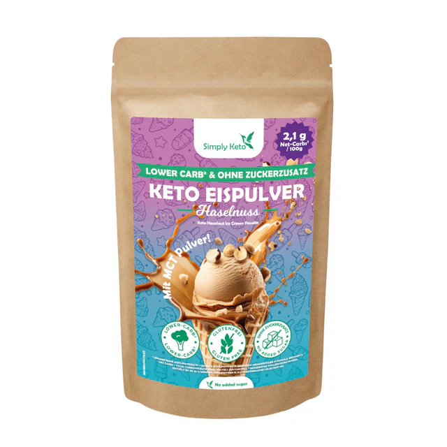 Simply Keto Lower-Carb Keto Eispulver Haselnuss to fit proszek do lodów, który przekształca się w gęste, kremowe lody o smaku orzechów laskowych z minimalną ilością węglowodanów. Dzięki zastosowaniu naturalnych substytutów cukru (erytrytol, xylitol, stewia) oraz MCT, deser jest idealny dla osób na diecie ketogenicznej, low-carb, bezcukrowej i redukcyjnej, które nie chcą rezygnować z lodów w sezonie ani poza nim — bez kompromisów smakowych i makro.