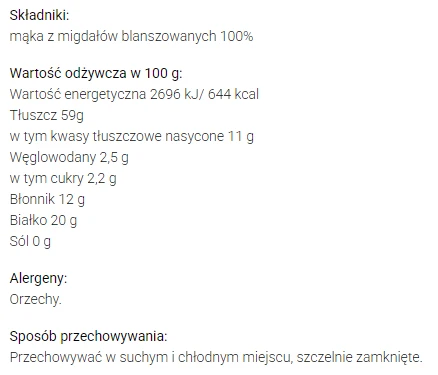 - 100% mąka z blanszowanych migdałów