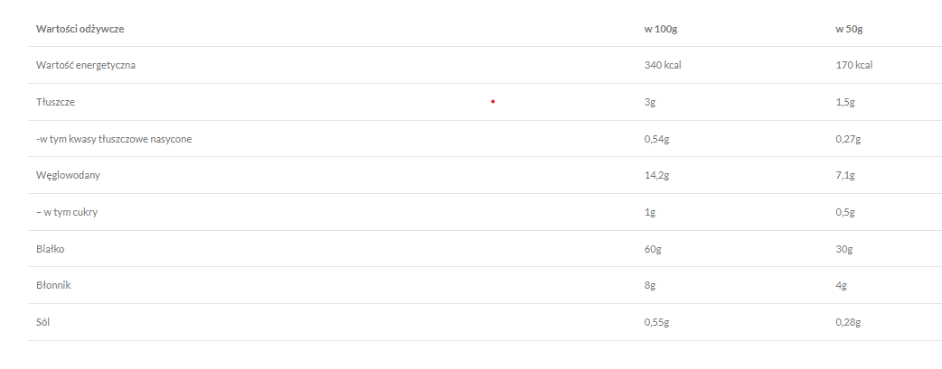 Skład i wartości odżywcze w prostych liczbach (na 100 g suchego produktu):