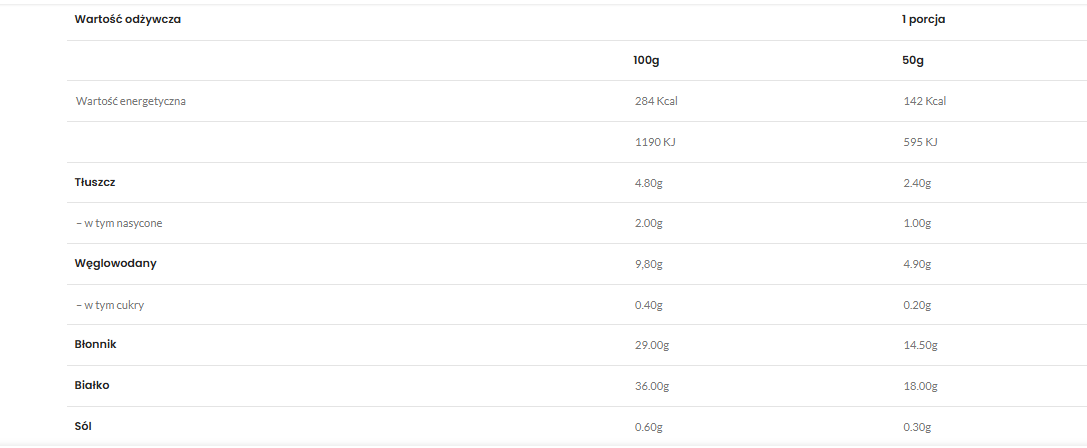 poręczna porcja 50 g — wygoda i mniejsze ryzyko „przeszacowania” porcji,