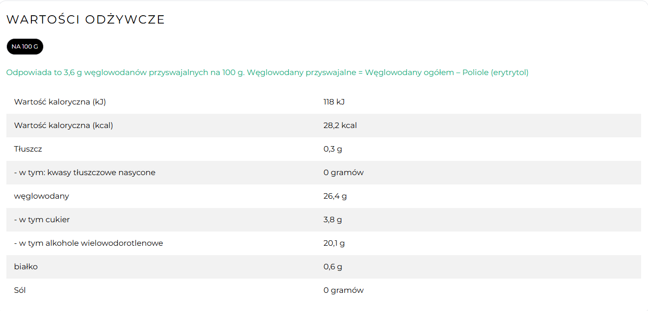 Bez dodatku cukru – słodzona erytrytolem, idealna na keto i low-carb.