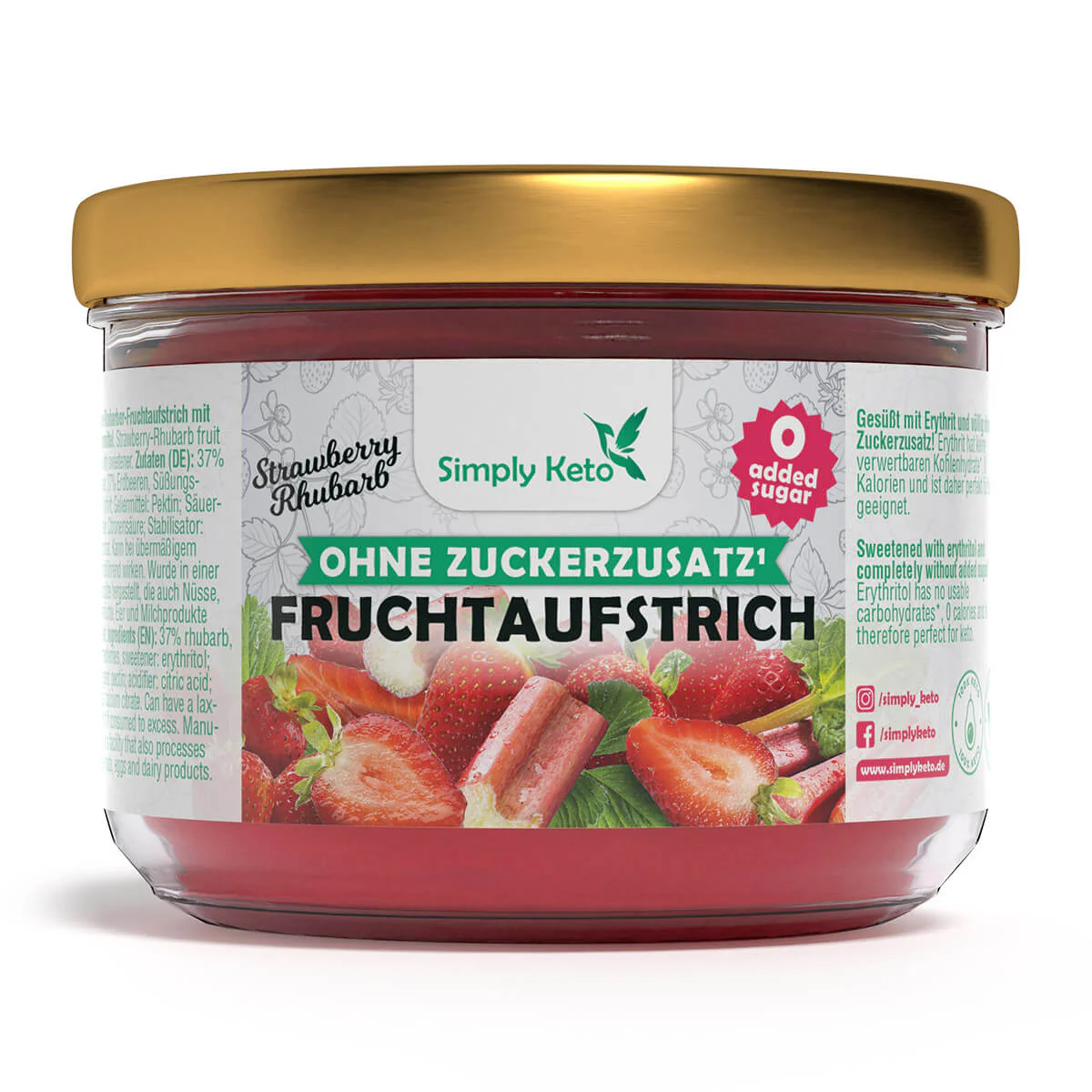 Simply Keto Keto Marmelade Rhabarber & Erdbeer to niskowęglowodanowa marmolada rabarbarowo-truskawkowa bez dodatku cukru — idealna dla diety keto, low-carb, redukcyjnej lub po prostu zdrowych stylów życia. Soczysty rabarbar połączony z naturalną słodyczą truskawek daje aromatyczny, owocowy smak, który świetnie pasuje do śniadania, deseru lub lekkiej przekąski — wszystko bez kompromisów dla makroskładników.