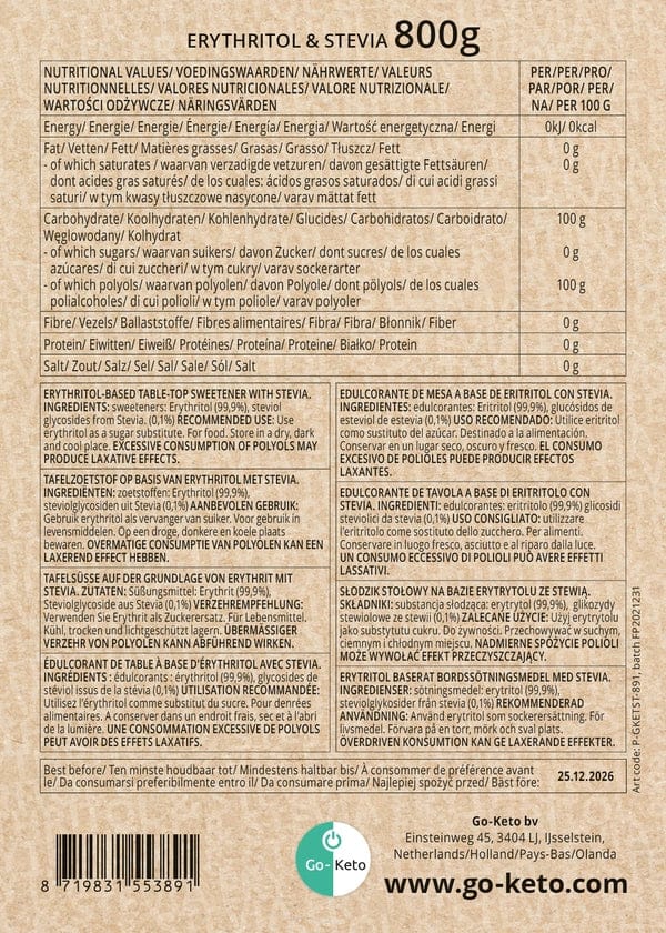 Mix Erytrytol i Stewia Słodzik Premium 800g Go-Keto