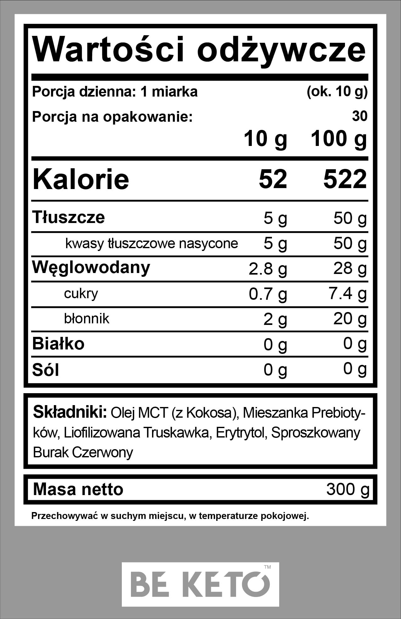 Olej MCT w proszku - Świeża Truskawka 300g Be Keto