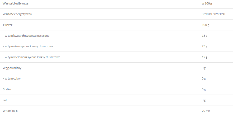 Produkt nie zawiera dodatków ani konserwantów. Wygodna forma sprayu pozwala równomiernie pokryć patelnię lub potrawę cienką warstwą tłuszczu.