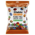 Orzeszki w mlecznej czekoladzie w kolorowej polewie bez dodatku cukru Diablo 40 g to chrupiąca przekąska inspirowana popularnymi czekoladowymi drażetkami. Produkt łączy prażone orzeszki ziemne z delikatną mleczną czekoladą oraz kolorową lukrowaną polewą, która nadaje całości charakterystyczną chrupkość.