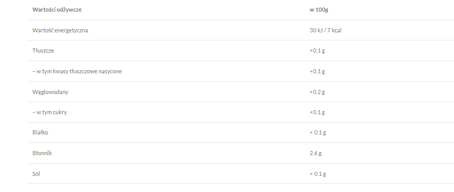 – bardzo niska ilość węglowodanów: <0,2 g / 100 g