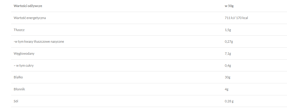 bardzo wysoka zawartość białka (30 g / 50 g),
