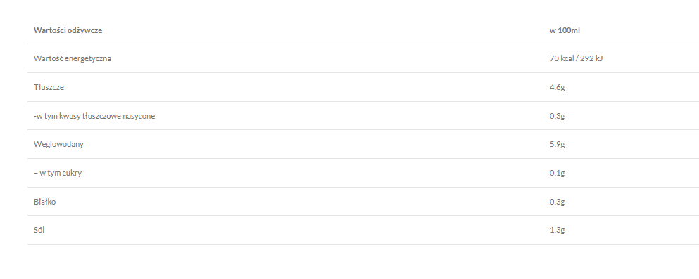• niskokaloryczny zamiennik tradycyjnego majonezu (~69 kcal/100 g)