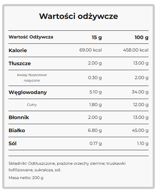 Truskawkowy Proszek Orzechowy 200g (70% Mniej Tłuszczu) FITREC